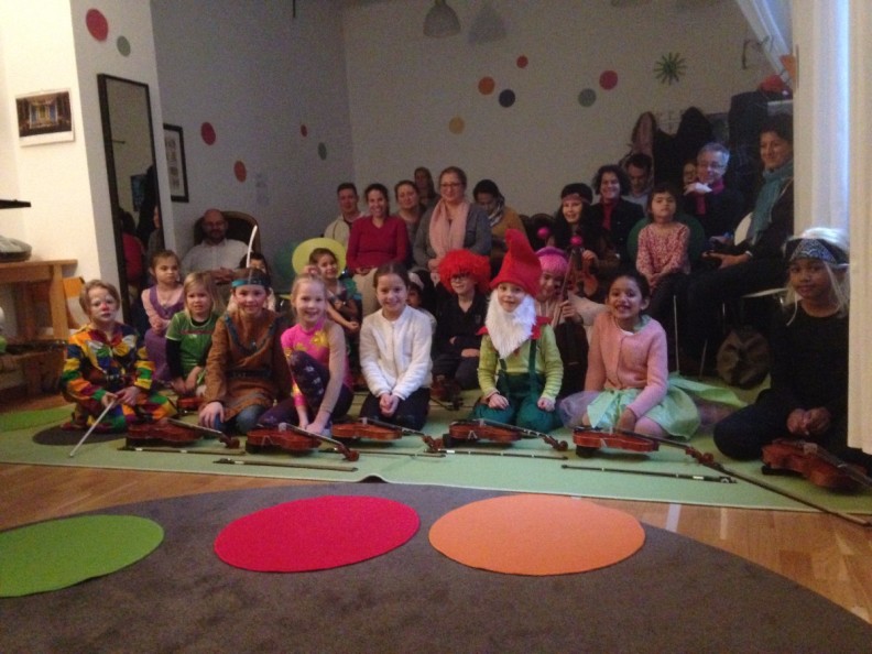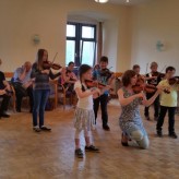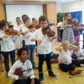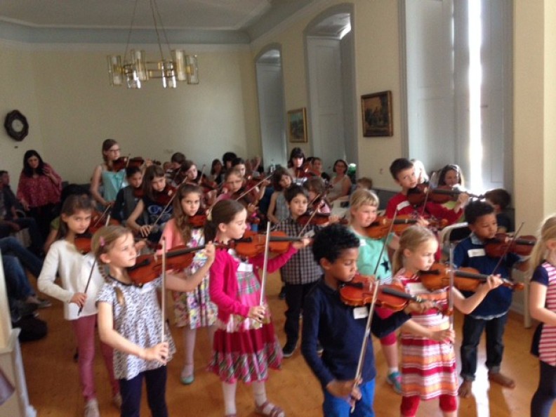 Die Kinder von Klassen der Suzuki Schule Mannheim spielten Dilley Dance von Helen Butterworth beim Eröffnungskonzert am Workshop in Altleiningen. Juni 2016