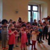Suzuki Schule Mannheim zusammen mit Kindern von der Musikschule Mannheim und Musikschule Grünstadt musizieren im prächtigen Rittersaal des Mannheimerschlosses.